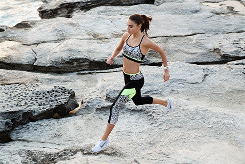 Standout with the Wish Fit Savannas Capri. This capri length legging features body slimming panel placements with our exclusive print and bright pop yellow. Made from firm but lightweight quick dry fabrication with unique flatlocked seam technology, elastic internal drawstring, hidden pocket at front waistband and zipped pocket at back waistband. Crotch panelling for ultimate comfort level.